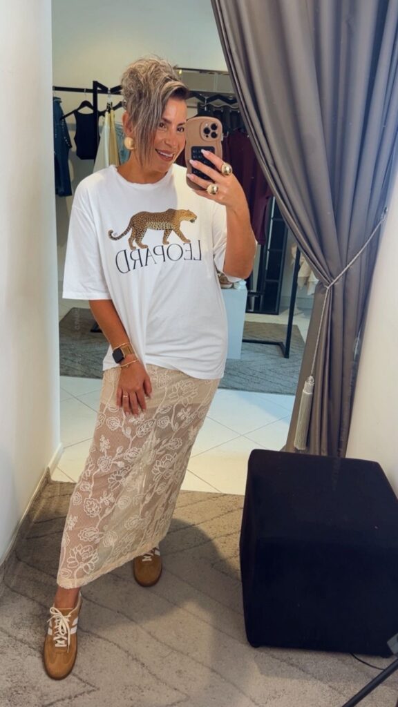 Camiseta 269,90 Vestido tela bordado 889,90 Tênis 209,90