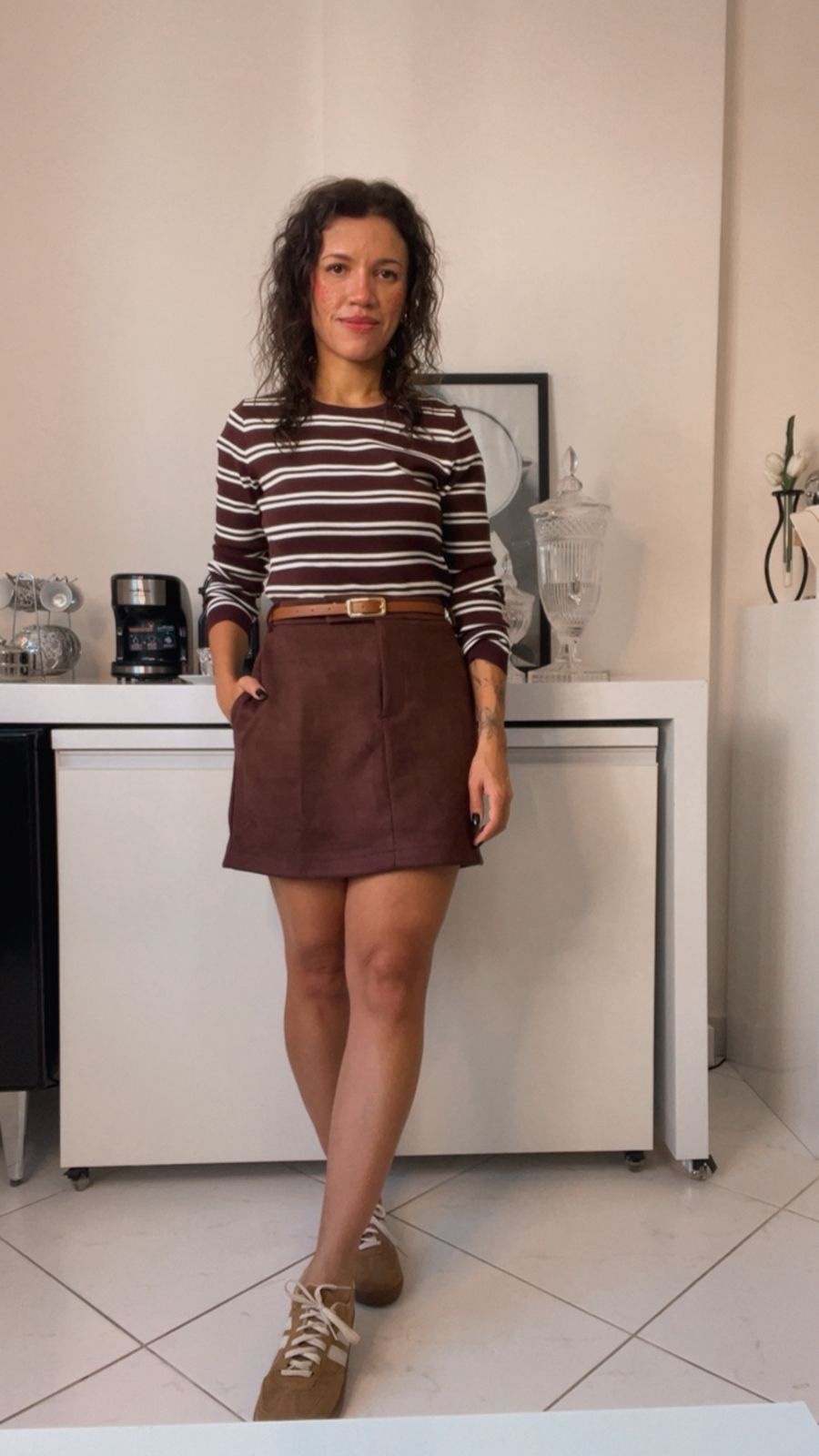 Blusa tricô 419,90 Saia suedeTênis 209,90