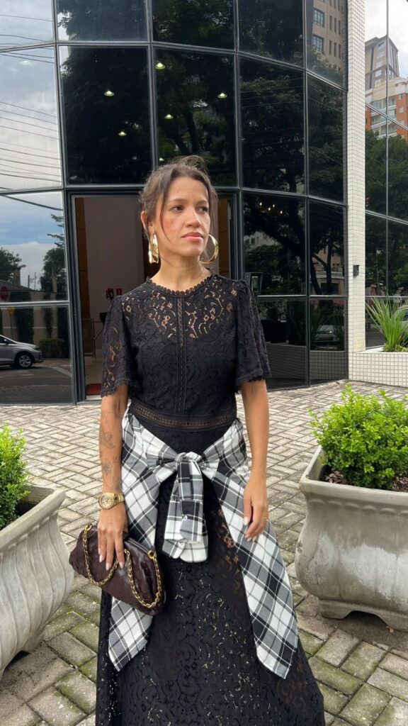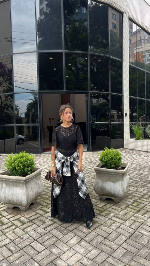 Vestido longo 989,90 Camisa oversized xadrez 389,90 Bolsa 599,90